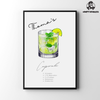 Jedes Poster zeigt einen detailreichen, von Hand illustrierten Cocktail im Aquarell-Stil, ergänzt durch das passende Rezept zum Nachmixen. Der obere Bereich kann mit deinem individuellen Namen gestaltet werden – für eine ganz persönliche Note.