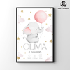Personalisiertes Geburts-Poster – Elefant mit Ballon (Junge)